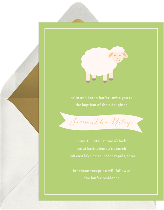 Change the text at the top of this Smiling Lamb Invitation to read “Is this love? Baby don’t herd me.” Edit the banner to say “Happy Valentine’s Day” and add a personal message at the bottom. The result is equally cute and funny for every relationship in your life.