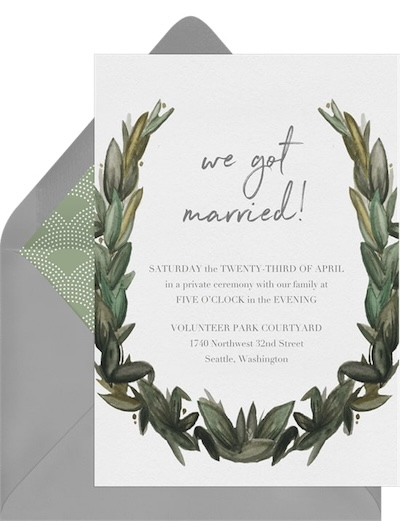 Once you find the ideal design, you can customize the card and send it to your loved ones in a matter of minutes. And if you eloped for your nuptials, don’t miss our guide on announcing an elopement so you can send your message with love and care.