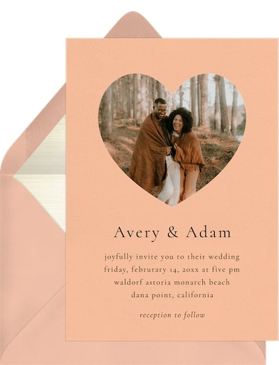 If you’re looking for a simple wedding invitation template, then our pick is this Simple Heart Frame invitation. The adorable heart-shaped photo frame is perfect for your favorite engagement snap, and the timeless font feels contemporary yet elegant.