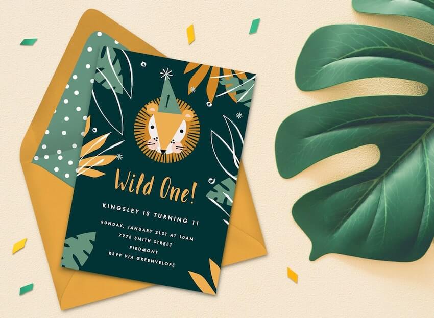 Get the whole jungle making noise about your wild one party with themed invitations from Greenvelope. With hundreds of digital invitations to choose from, you’re sure to find the perfect design. Here are some of our favorite wild one birthday theme party invitations.