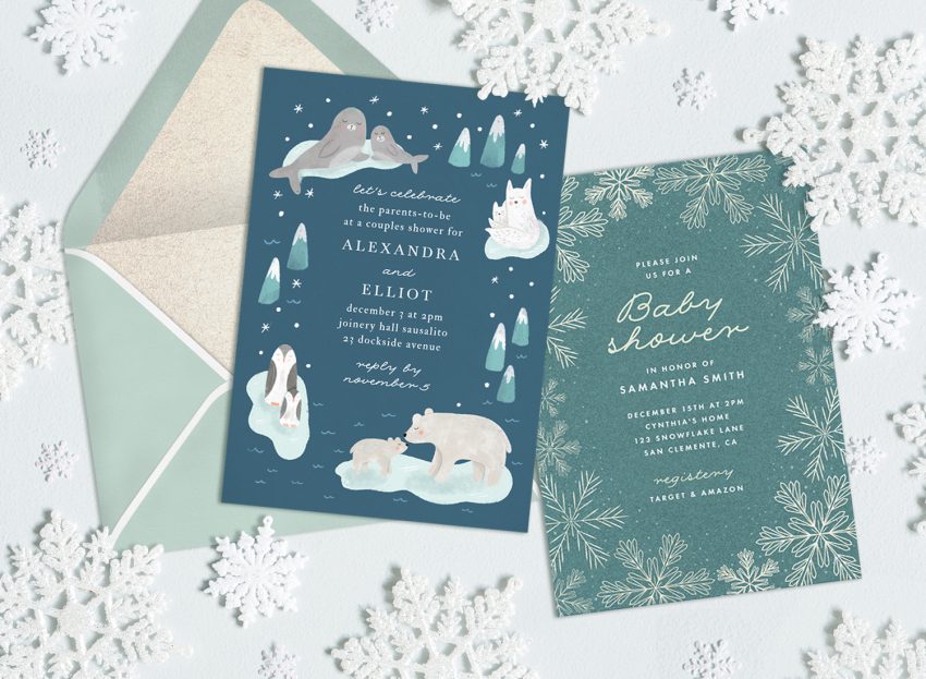 With these dreamy invites, you’re sure to find the perfect way to ask guests to attend a celebration for your little bundle of joy. From bright and colorful to minimalist and sophisticated, there’s a design for every winter-inspired theme.