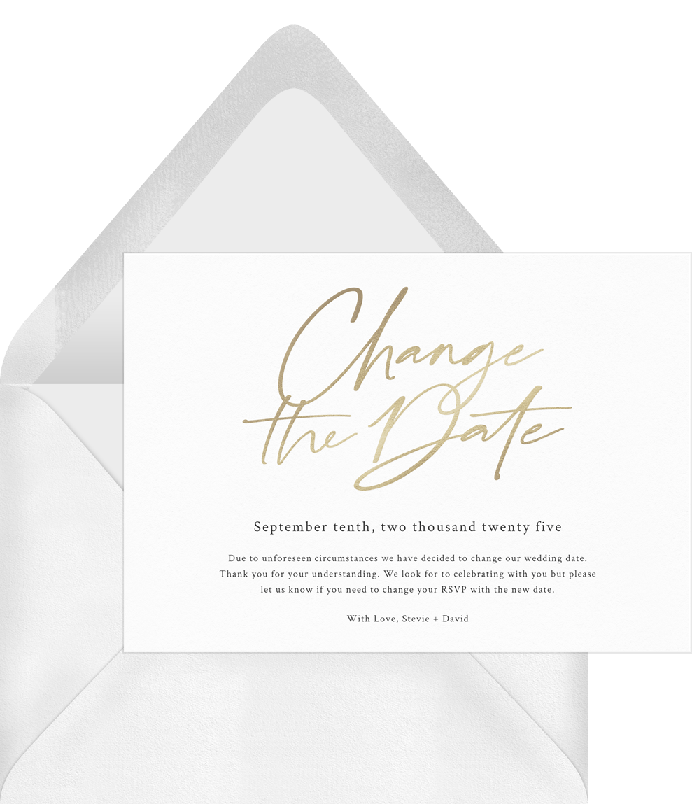 announcements change the date white wedding updates Designs