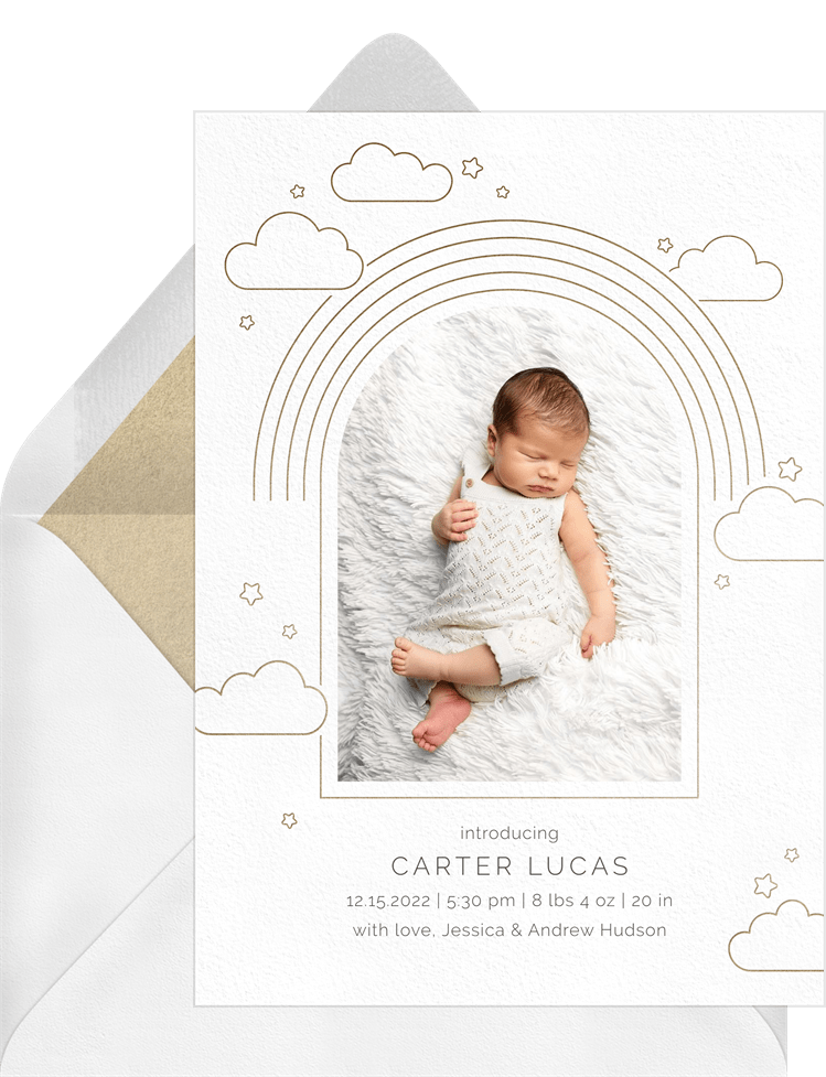 announcements clouds and rainbow white birth Designs