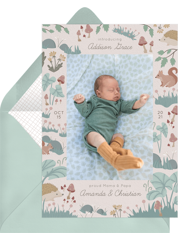 announcements enchanted woodland creme birth Designs