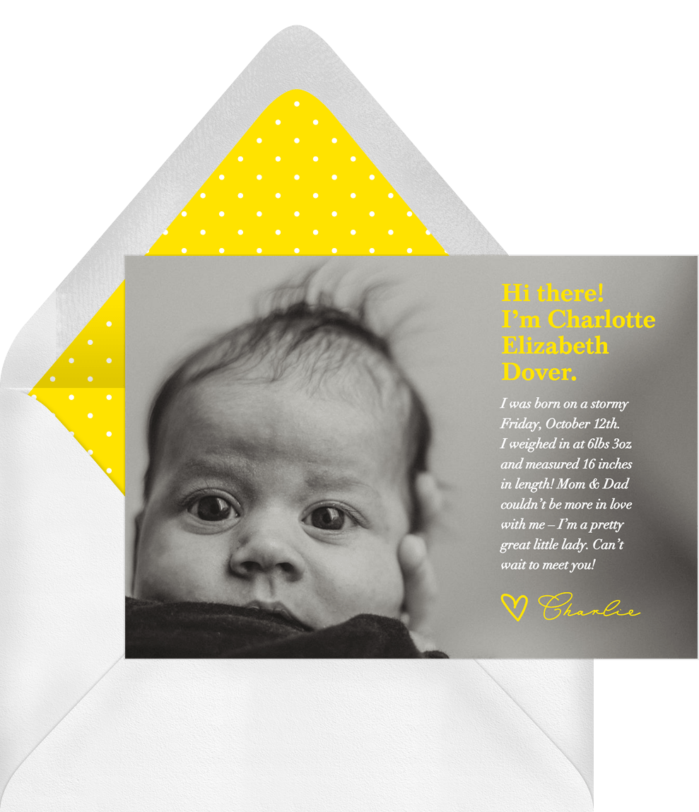 announcements intro note yellow birth Designs
