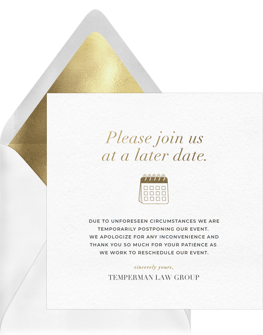 announcements join us later gold cancel Designs