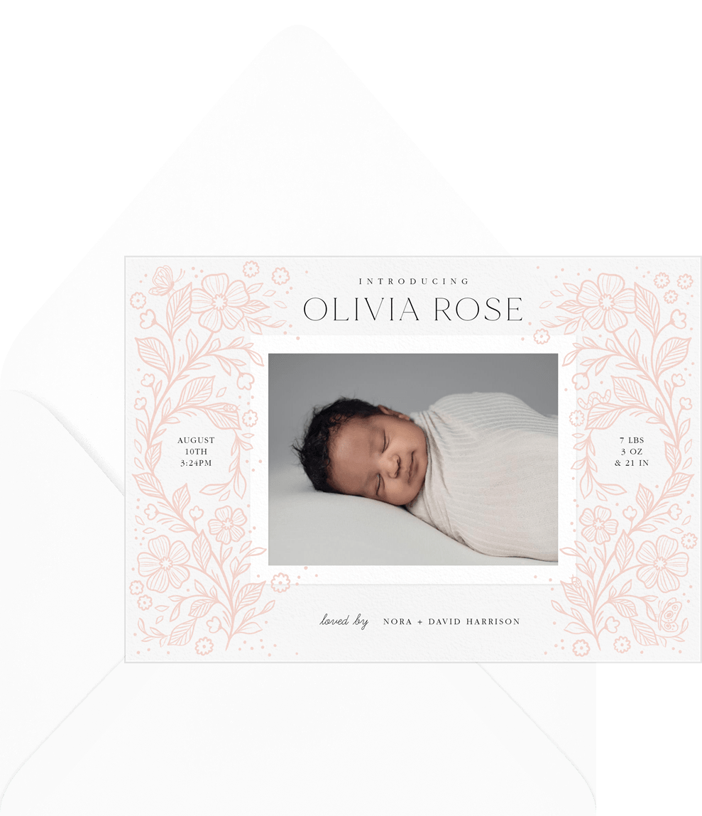 announcements little garden pink birth Designs