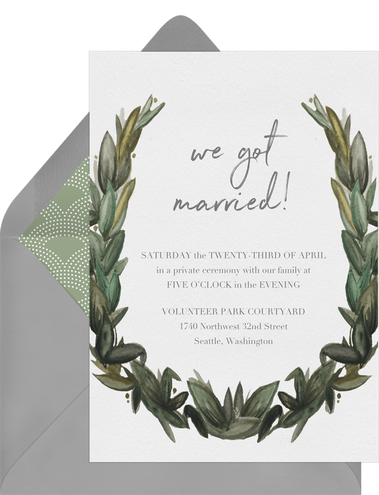 announcements lovely watercolor laurel white wedding Designs