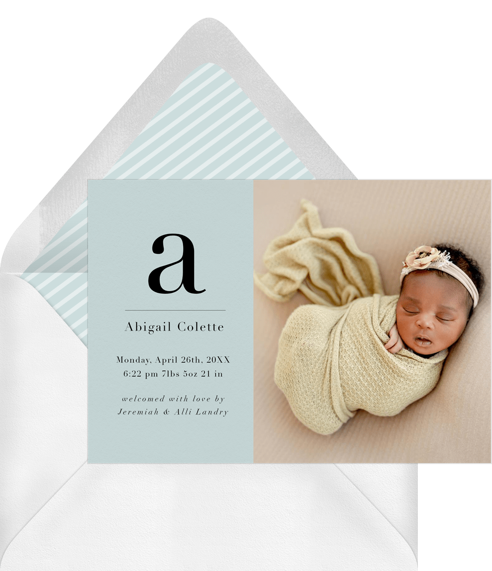 announcements minimalist initial blue birth Designs