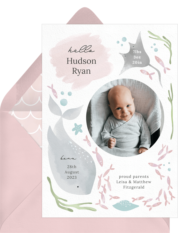 announcements ocean friends pink birth Designs