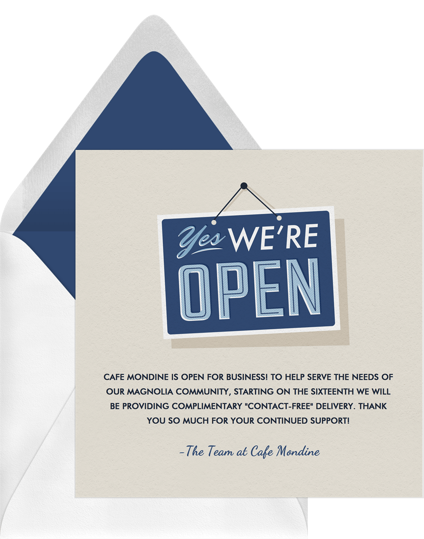 announcements open for business blue business Designs