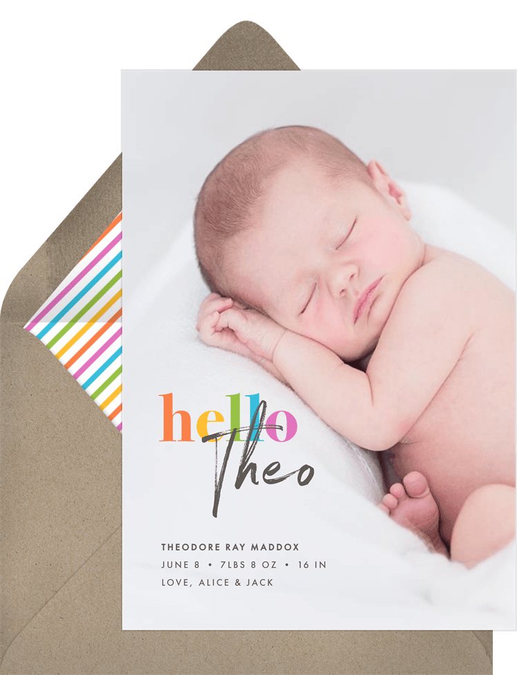 announcements rainbow hello yellow birth Designs
