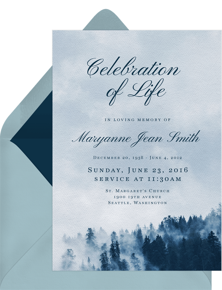 announcements serene forest blue memorial Designs
