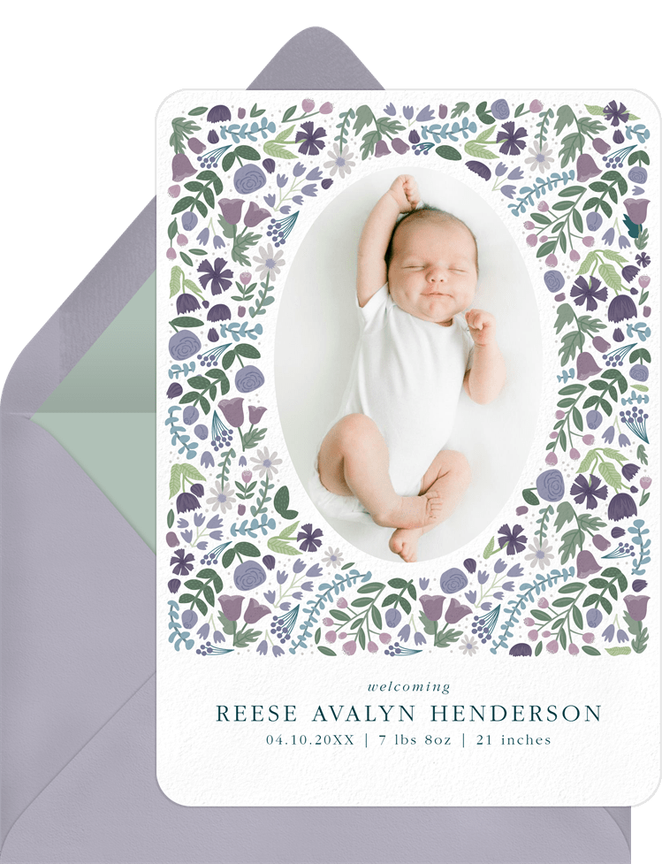 announcements sweet blossoms purple birth Designs