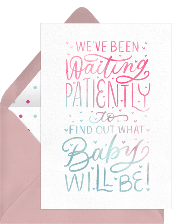 announcements waiting patiently pink gender reveal Designs