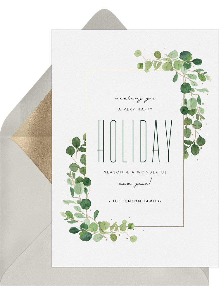 cards elegant greenery white holiday greetings Designs