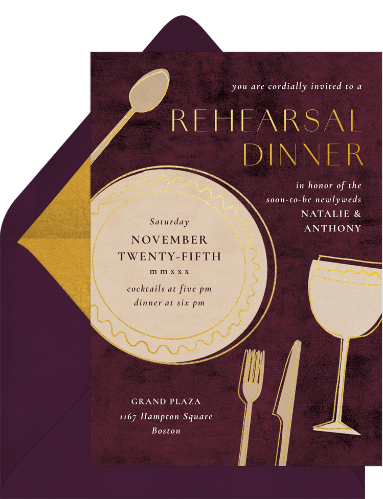 cards gilded gatherings red rehearsal dinner Designs