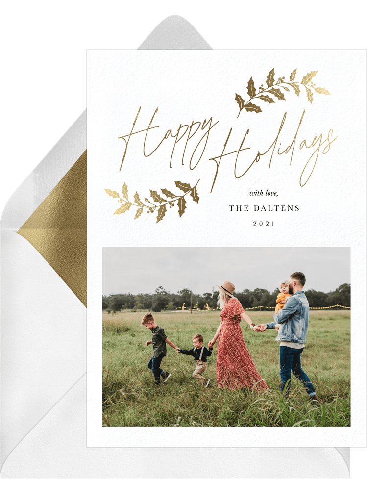 Gilded Holly Branches Photo Card