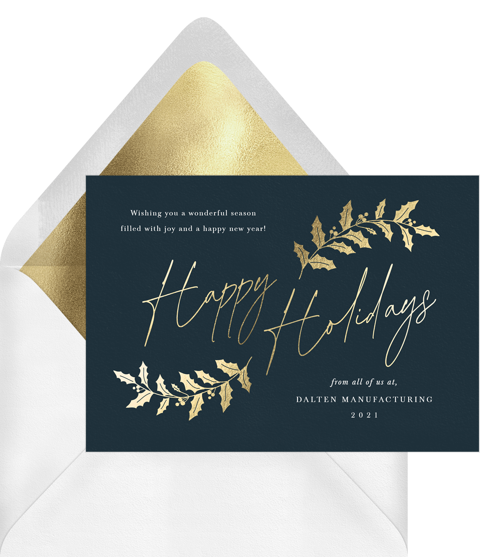 cards gilded holly branches blue business holiday greetings Designs