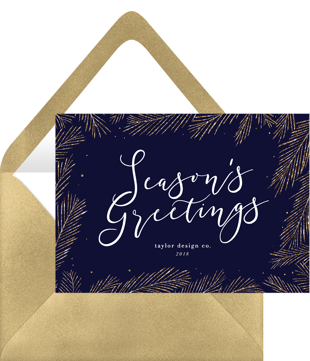 cards glittery pine boughs blue business holiday greetings Designs