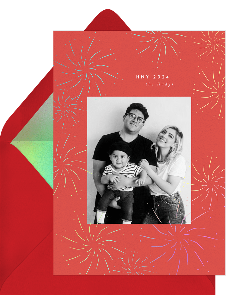 cards holographic fireworks red new year's greeting Designs