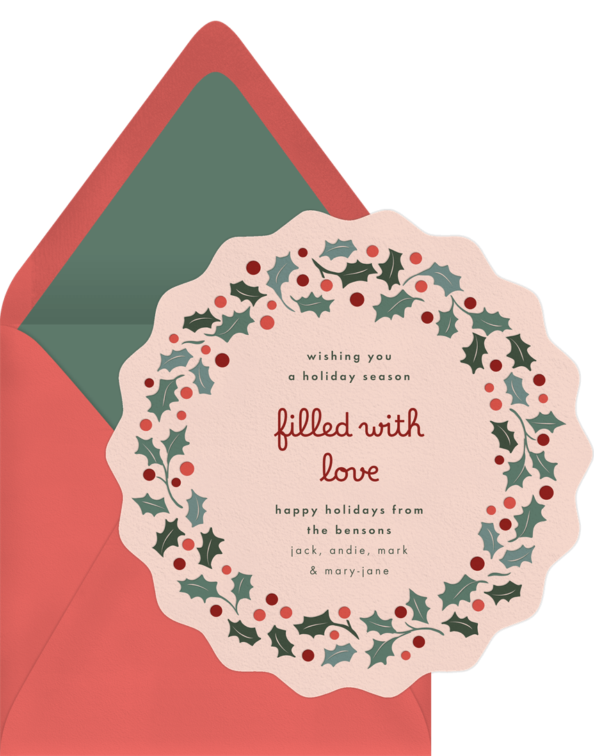 cards letterpress holly wreath creme holiday greetings Designs
