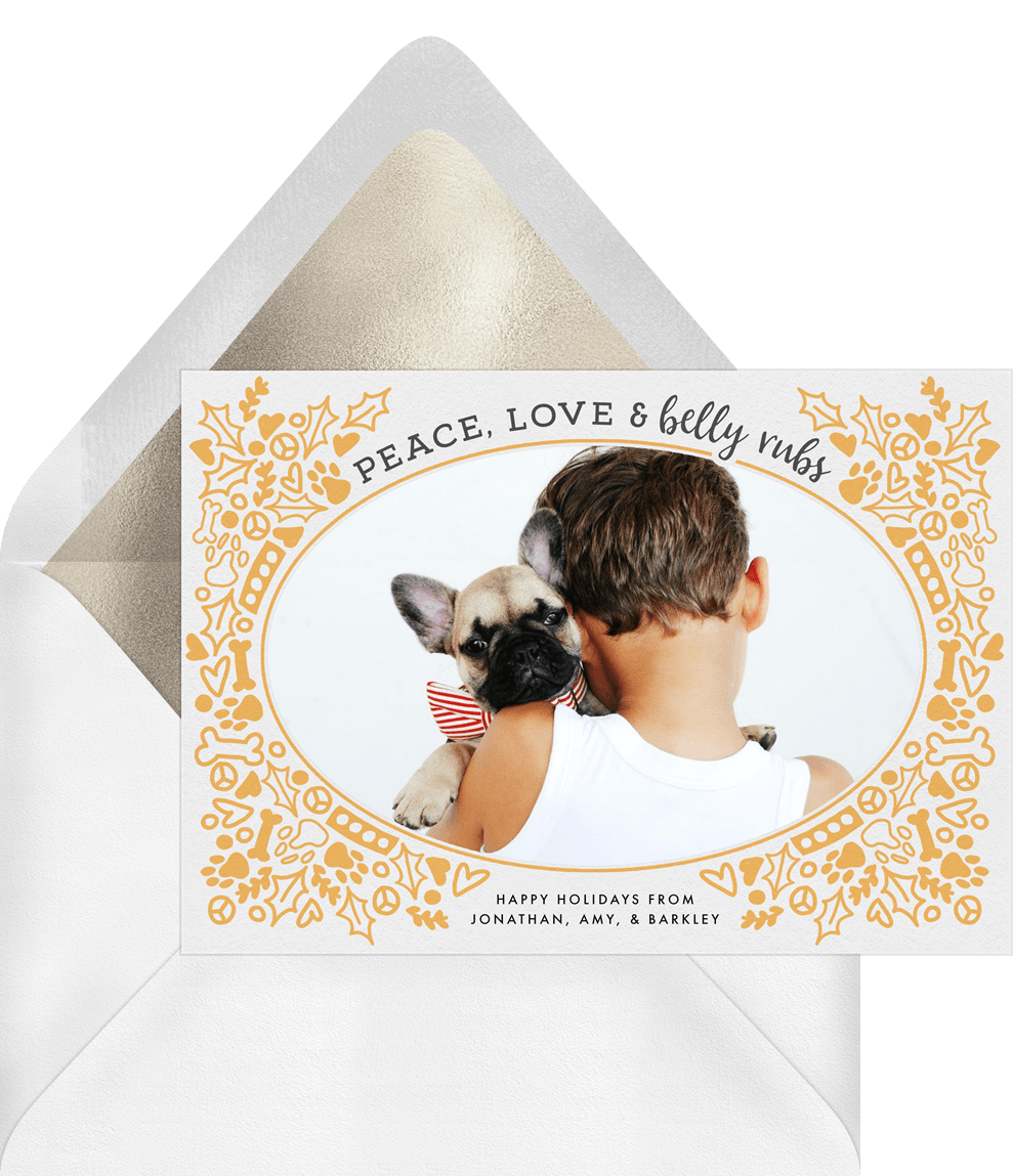 cards love & belly rubs yellow holiday greetings Designs