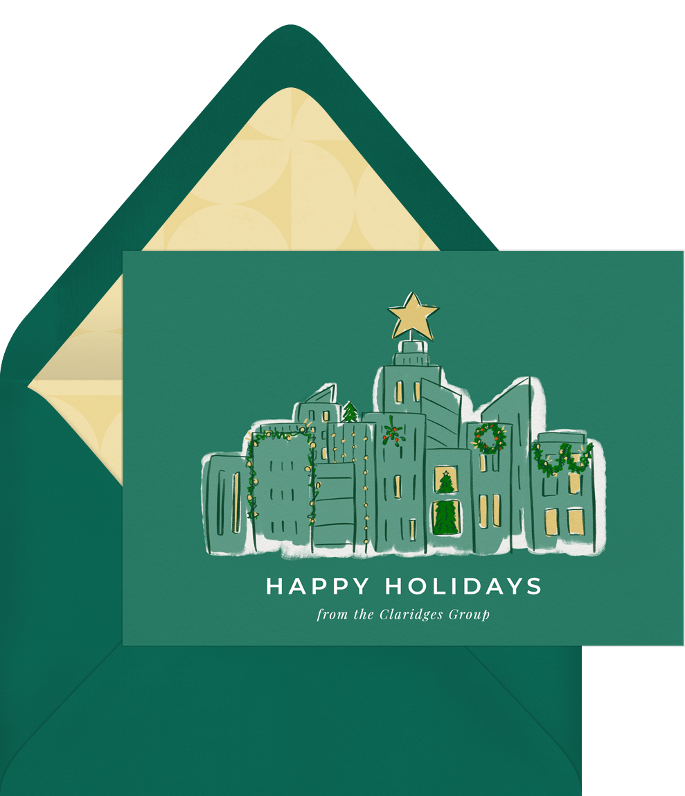 cards playful city skyline green business holiday greetings Designs
