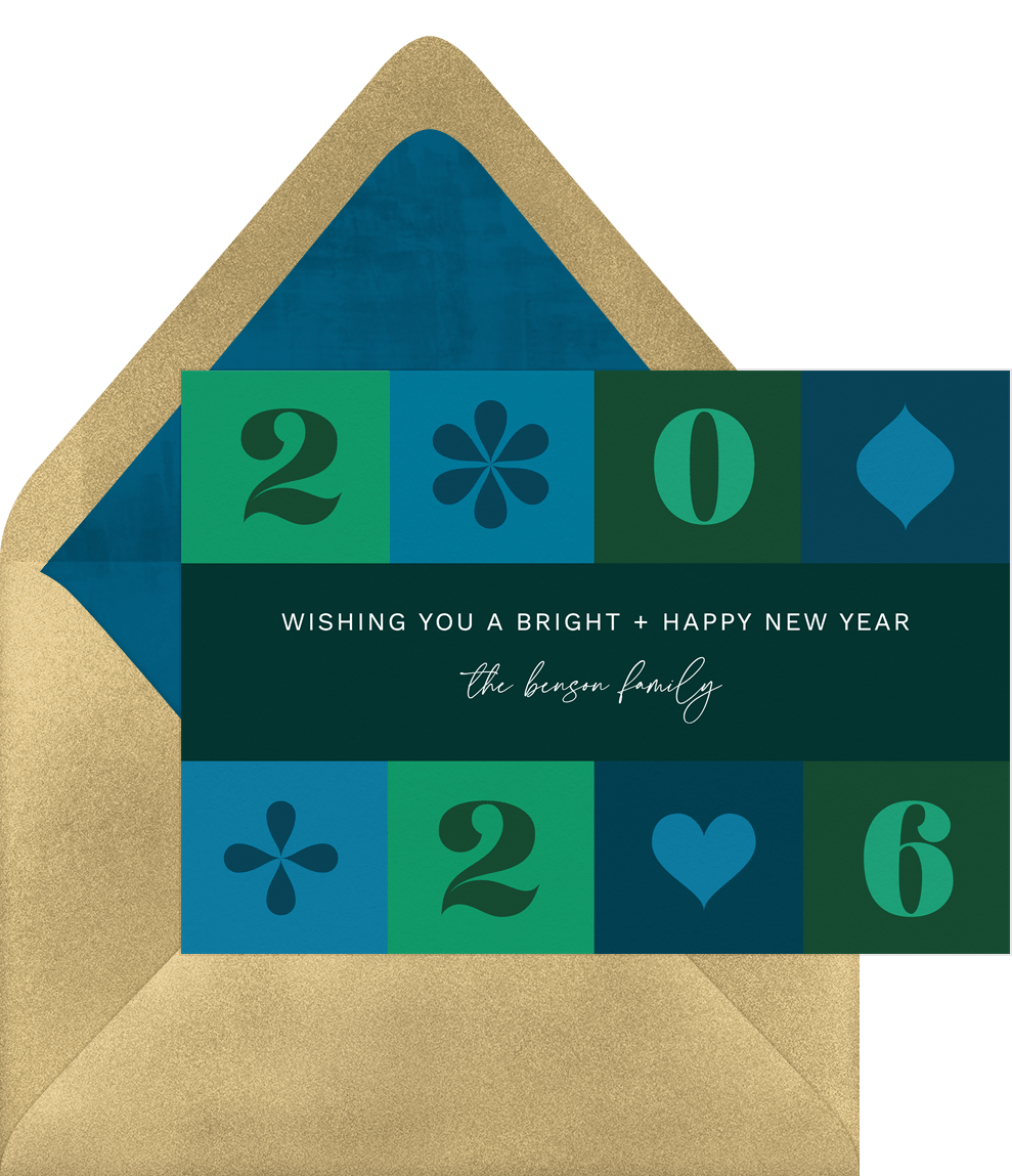 cards retro bold green new year's greeting Designs