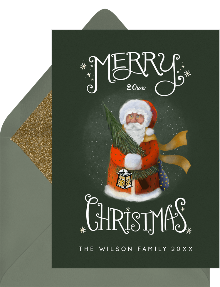 cards santa claus green christmas greetings Designs