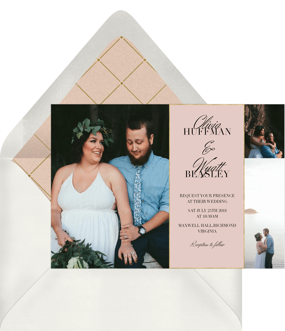 invitations 3 photo charm pink wedding Designs