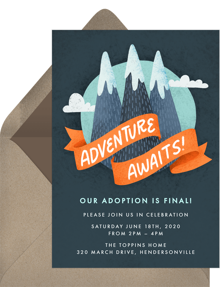 invitations adventure awaits blue adoption party Designs