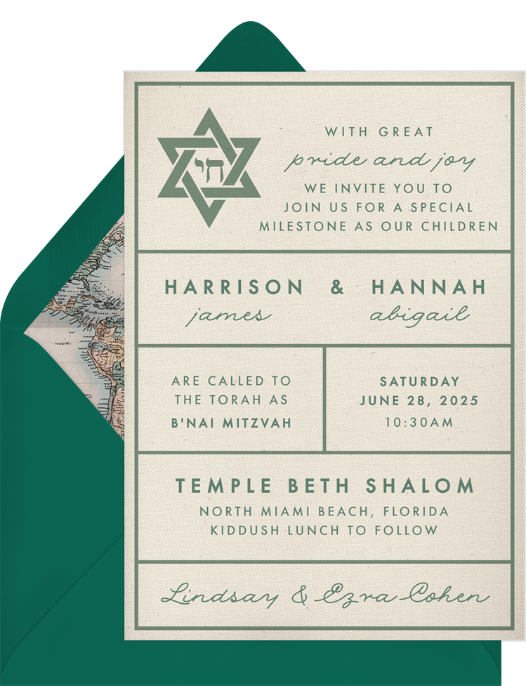 invitations airy green bat mitzvah Designs