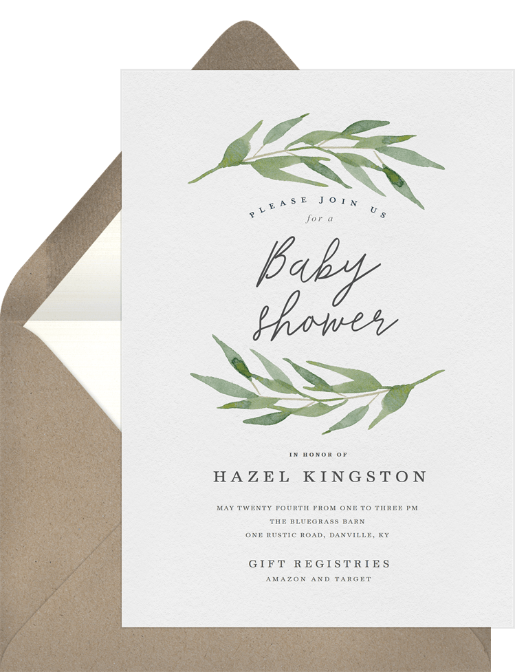 invitations arched branches green baby shower Designs