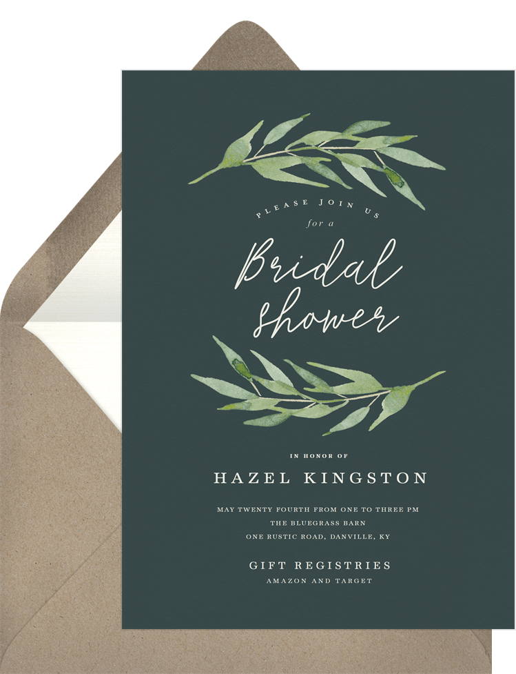 invitations arched branches green bridal shower Designs