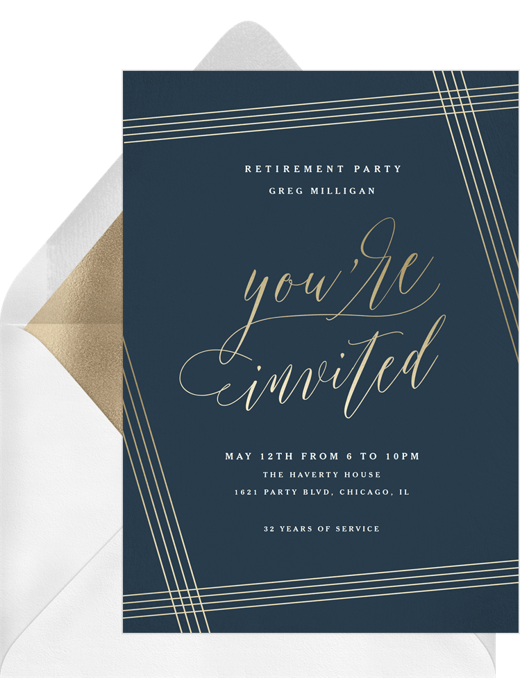 invitations asymmetrical pinstripe frame blue retirement Designs