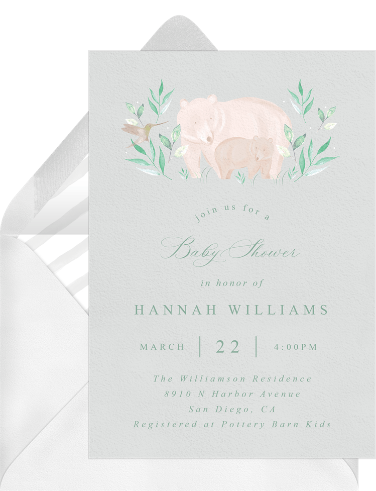 Baby Bear Greenery Invitation