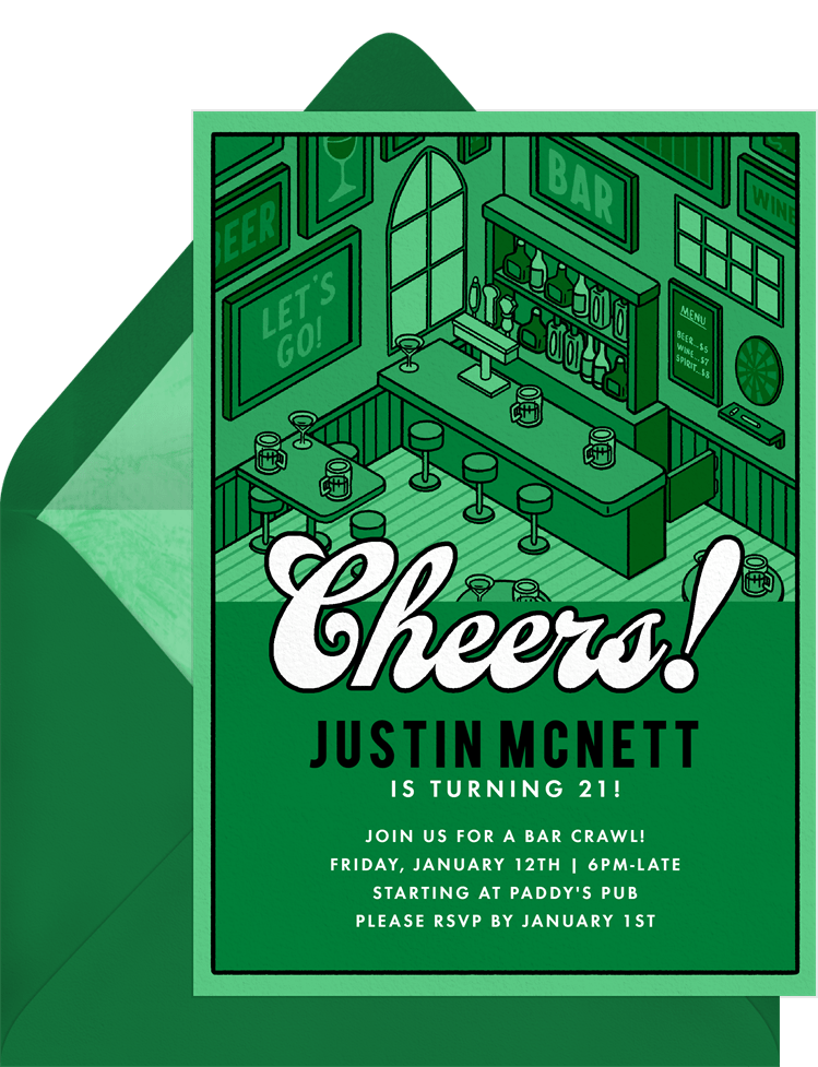invitations bar crawl green adult birthday Designs