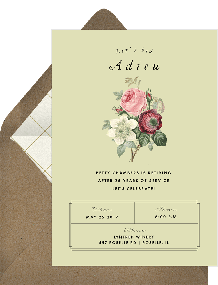 invitations bid adieu green retirement Designs
