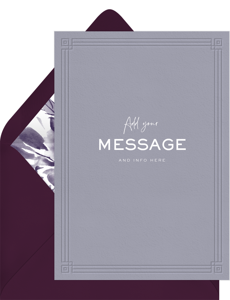 invitations blind deboss border purple party Designs