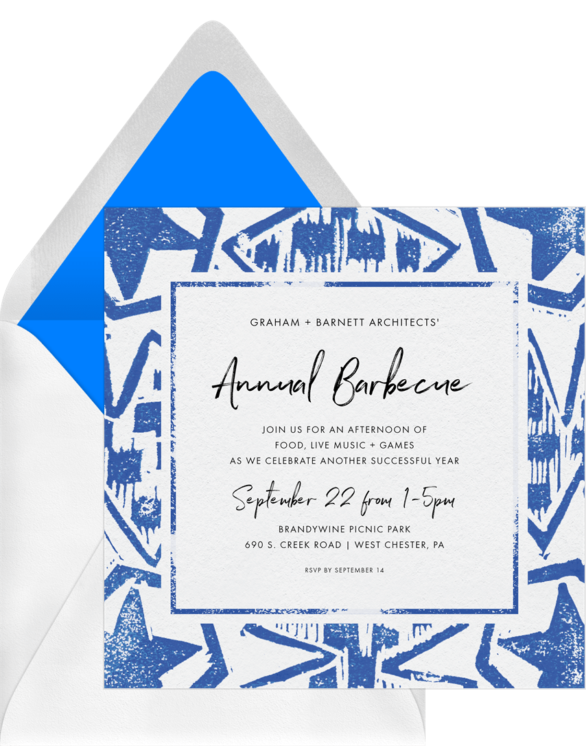 invitations block print blue entertaining Designs