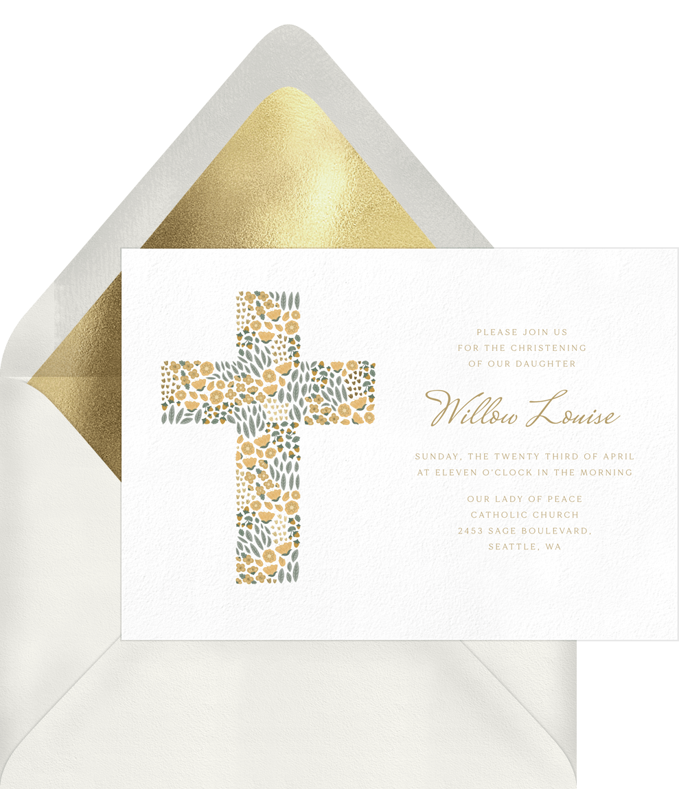 invitations blooming cross yellow baptism Designs