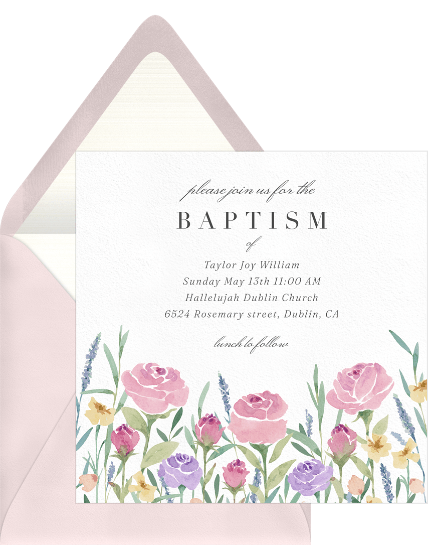 invitations blooming flowers purple baptism Designs