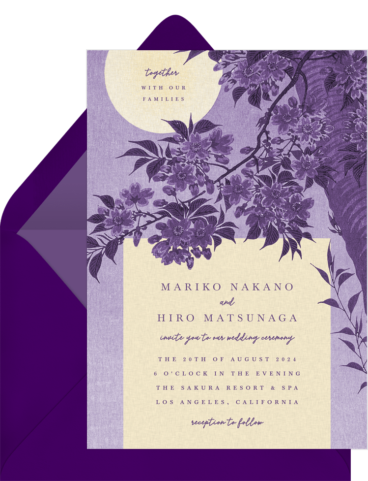 invitations blossoming cherry purple wedding Designs
