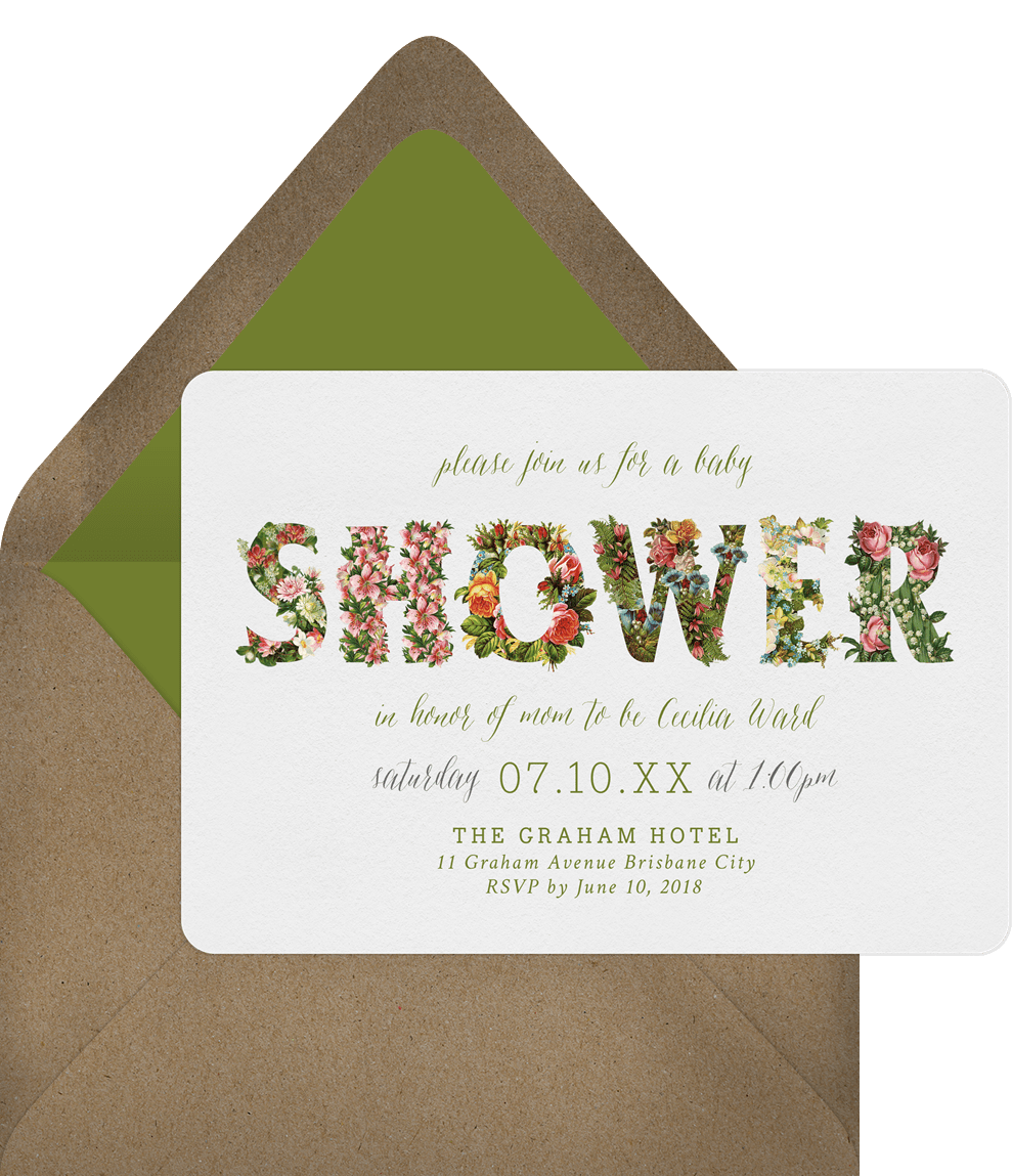 invitations blossoming flowers green baby shower Designs