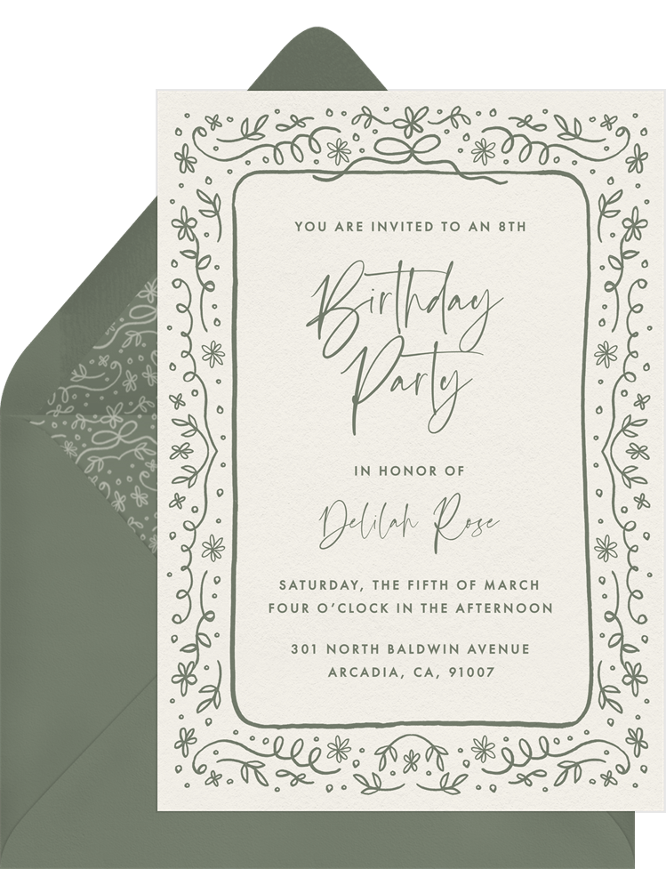 invitations boho garden whimsy green kids birthday Designs