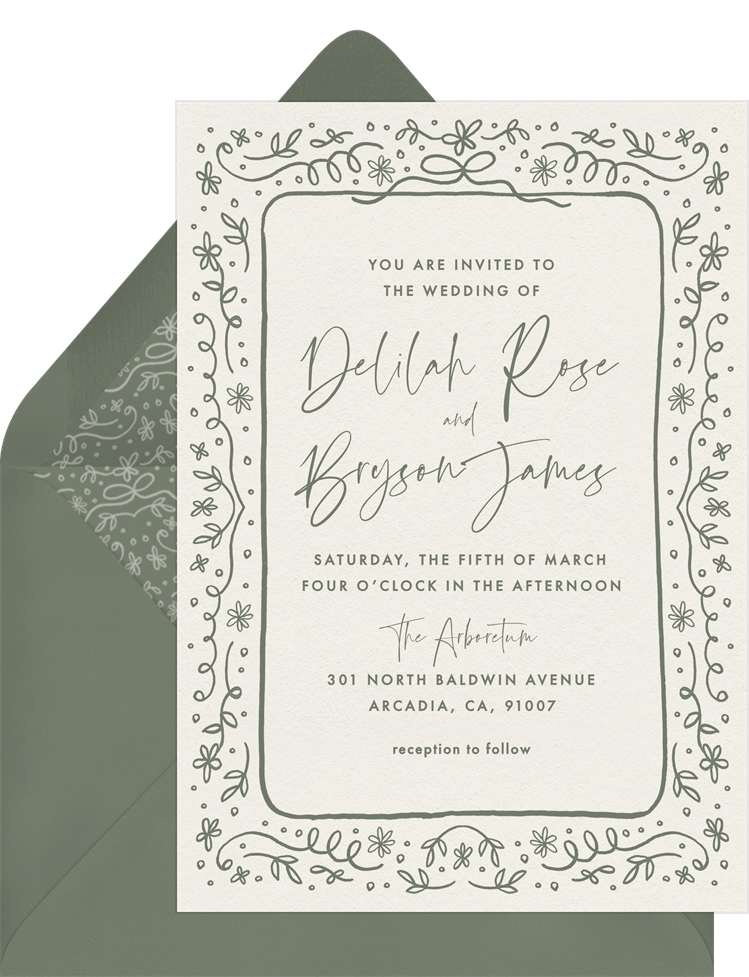 invitations boho garden whimsy green wedding Designs