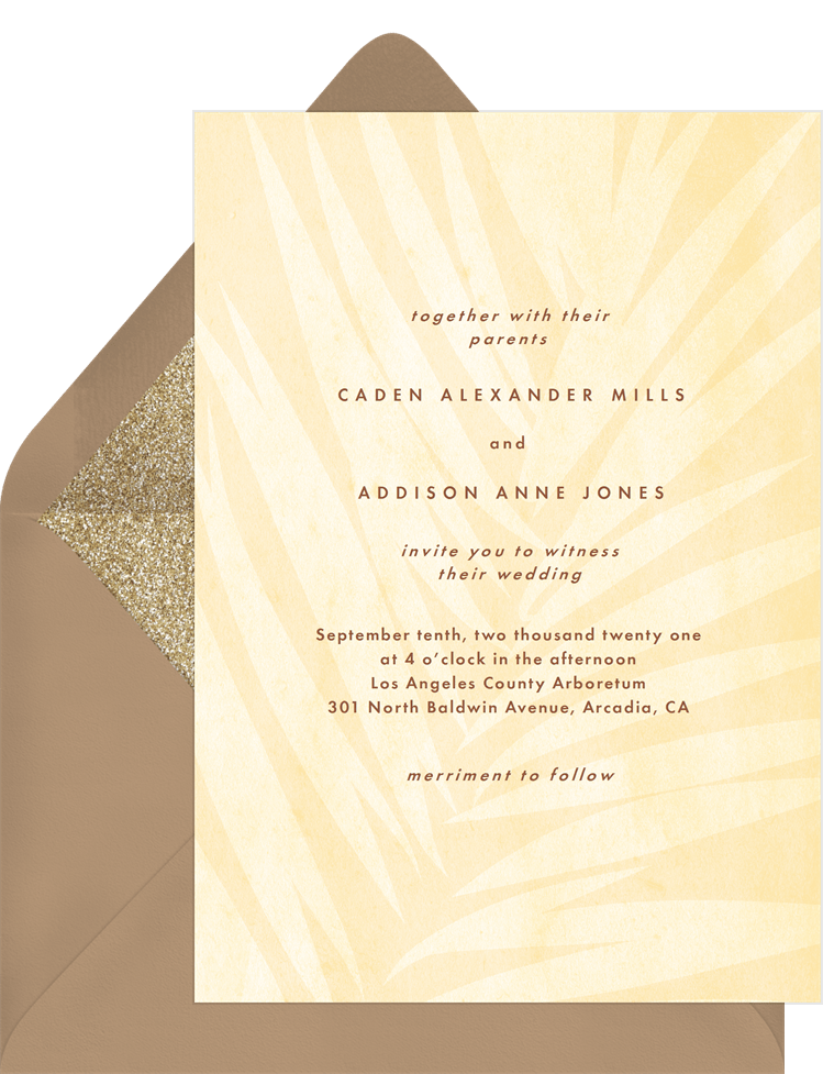 invitations boho palm leaves yellow wedding Designs