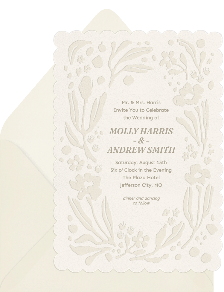 invitations bold letterpress florals creme wedding Designs