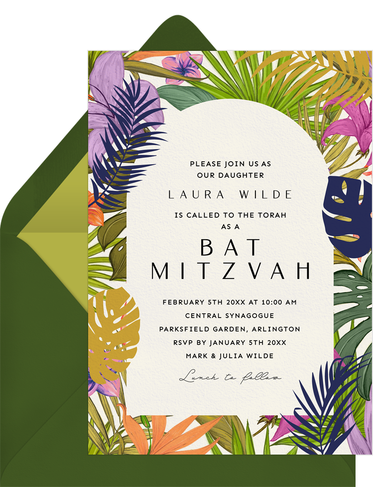 invitations bold tropics green bat mitzvah Designs